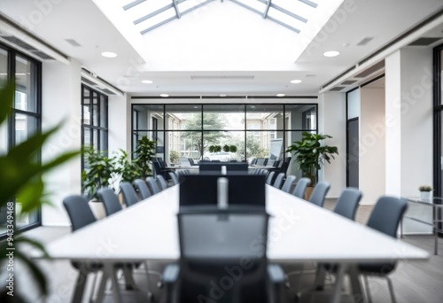 Blur focus of White open space office interior can be used as background, ai