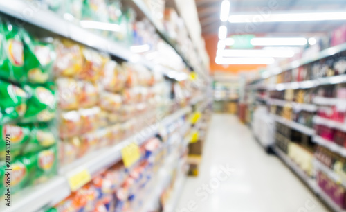 blur or defocus background, perspective view of shelf in supermarket