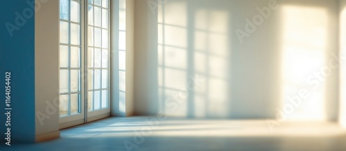 Blurred abstract image of an empty room with light streaming through a window and door perfect for backgrounds and textures