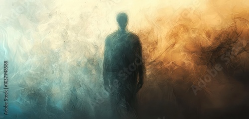 Blurred and abstract, this depiction of a male ghost delves into spiritual realms.