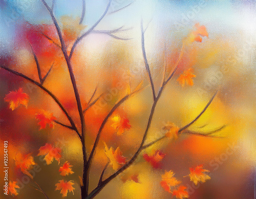 Blurred Autumn Colors Frosted Window View of Distant Foliage in Soft Focus