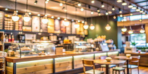 Blurred background, Blur restaurant store with bokeh light background, Blurry coffee shop counter backdrop, banner, poster, food and drink business mockup, template.
