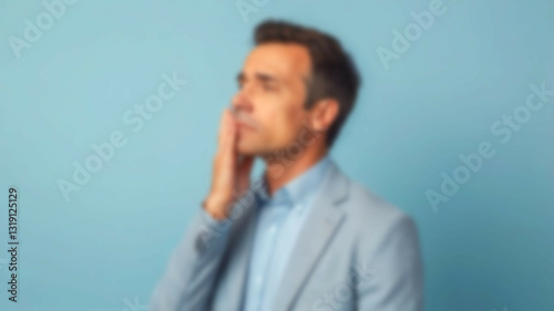 Blurred background highlighting a person in a reflective state, paired with a light blue backdrop that accentuates cognitive focus