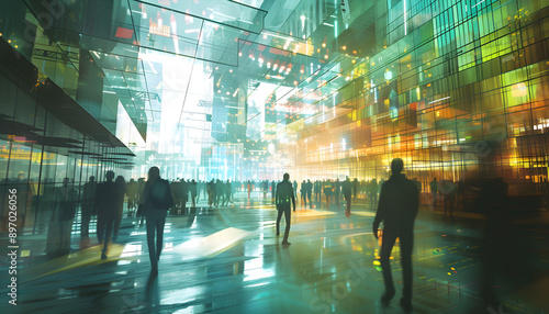 Blurred Background of information technology, business, people strategy in financial operations, marketing corporate concept, globalization concept.