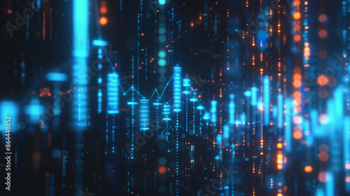 Blurred binary code resembling stock market data moving in various directions.