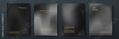 Blurred black gold backgrounds set with modern abstract blurred color gradient patterns. Templates collection for brochures, posters, banners, flyers and cards. Vector illustration.