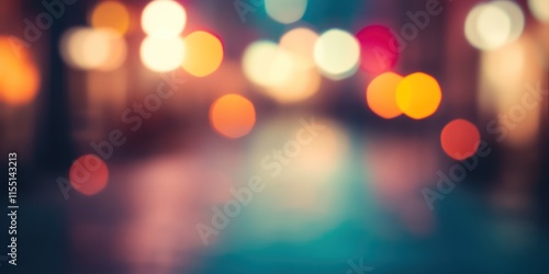 Blurred bright glowing lights of district in megapolis under dusk sky in evening on blurred background