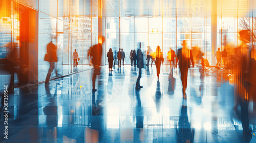 blurred business team working in modern white office with panoramic windows