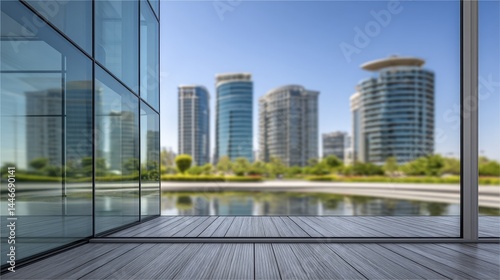 Blurred city abstract glass wall, modern architecture, urban texture, building facade - lights building modern