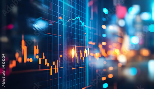 Blurred City Background with Stock Market Graph Overlay