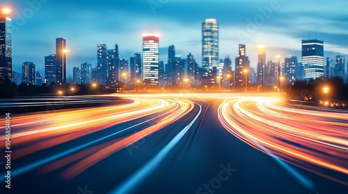 Blurred City Lights. Modern Urban Freeway Road With Moving Traffic Trail in Night Hong Kong