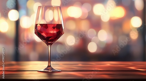 Blurred glowing lights next to wine glasses, creating a peaceful and elegant visual, style book illustration