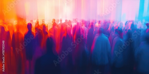 Blurred image of a corporate seminar populated by a large group of attendees, set against an abstract background and soft lighting.