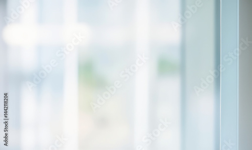 Blurred image of a window with sheer white curtains and a light background.