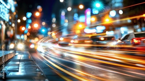 Blurred motion of multiple cars driving fast on a busy urban street during the day