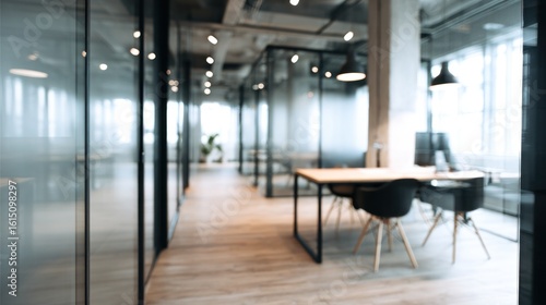 Blurred Office Background With Modern Glass Partitions For Website, Banner, Conference, Advertising And Corporate Presentation