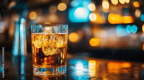 Blurred orange light from a nighttime gathering at a tavern or bar.