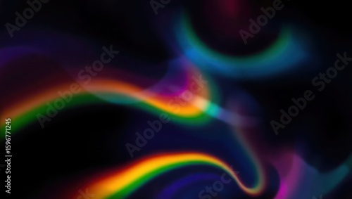 Blurred rainbow refraction overlay effect. Light lens prism effect on black background. Holographic reflection, crystal flare leak shadow overlay. Colorful rainbow disco ball light