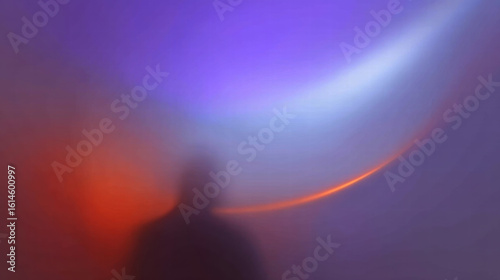 Blurred silhouette emerges against backdrop of vibrant colors, creating abstract and ethereal atmosphere that evokes sense of mystery and intrigue