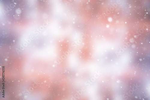 blurred snow / winter abstract background, snowflakes on abstract blurred glowing leaf background