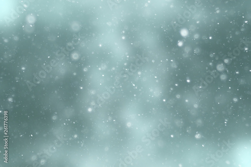 blurred snow / winter abstract background, snowflakes on abstract blurred glowing leaf background
