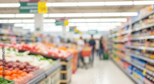 Blurred Supermarket Aisles A Fully Blurred View of Grocery Shopping