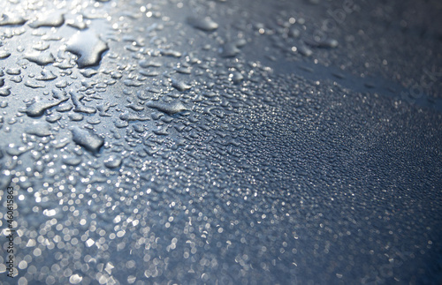 blurred water drops on a gray background, shallow depth of field, play of light, bokeh
