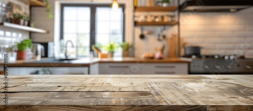 Blurry kitchen room as a background for a table top with copy space image.
