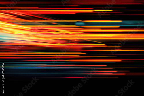 Blurry photo of red, yellow, and blue lines on black background. Suitable for graphic design projects