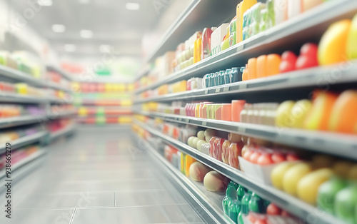 Blurry shopping shelves in supermarkets and department stores