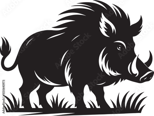 Boar Silhouette isolated on white background Minimalist boar vector shape icon