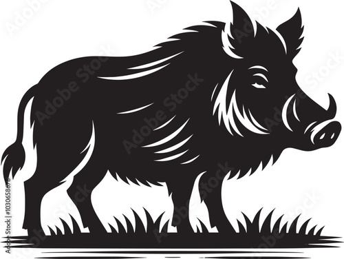 Boar Silhouette isolated on white background Minimalist boar vector shape icon
