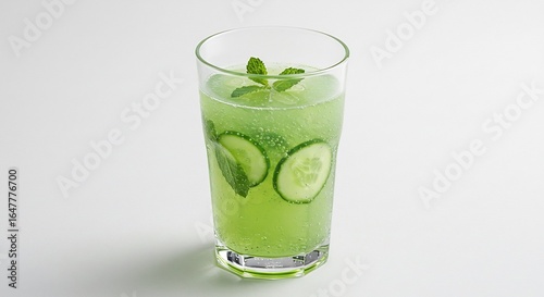 Boisson rafra�chissante concombre menthe lumineuse �t�. AI Generated