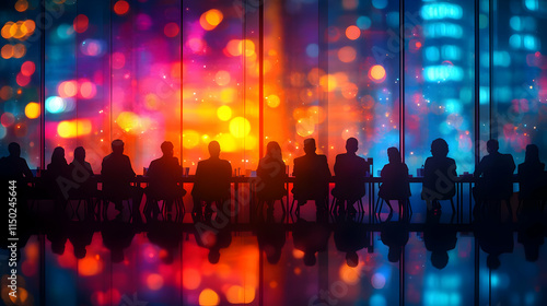 Bokeh digital art of business meeting focused on digital transformation strategy with copy space concept as A bokeh digital art background showcasing a business meeting focused on developing a digital