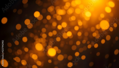bokeh lights, golden orbs, out of focus, warm glow, abstract background, blurred circles, festive atmosphere, dark backdrop, soft focus, magical ambiance, holiday mood, glittering effect, dreamy textu