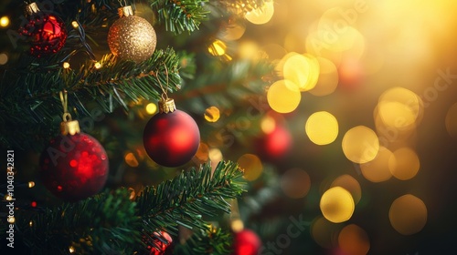 Bokeh of Light on Christmas tree. Defocused Light on Christmas tree on blurred background. Blurred Christmas background for template