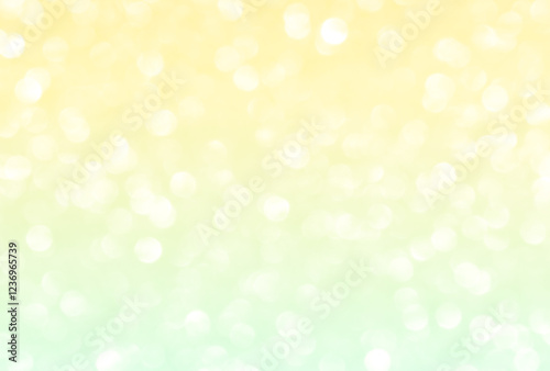 Bokeh yellow green snow glitter christmas light new year celebration background.