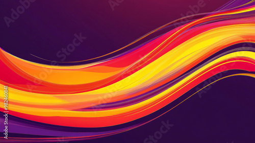 Bold and bright lines in red, yellow, and orange sweeping across a deep purple background, creating a strong abstract design.