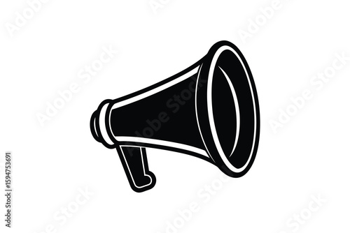 Bold Black and White Megaphone Illustration Amplifying Voices and Messages Through a Classic Design Presented in a Striking Silhouette