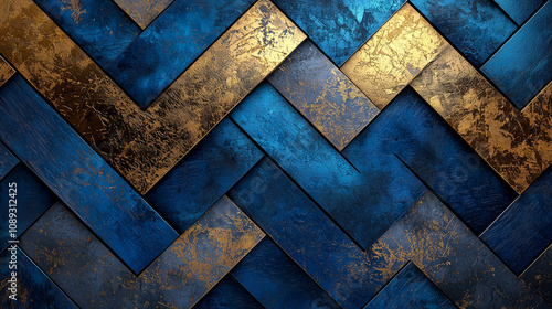 Bold Blue and Gold Zigzag Pattern Abstract Art