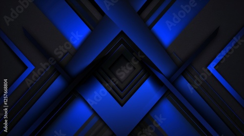 Bold blue lines and triangles on a dark background. Geometric design for banner template with white space in the center for text. Modern minimalist wallpaper with copy space.