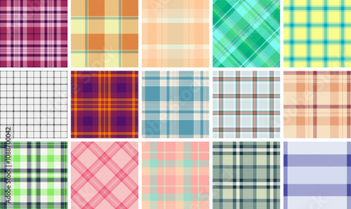 Bold check patterns with stripes and textured backgrounds. A perfect collection for Scottish or English themed textile and clothing projects.