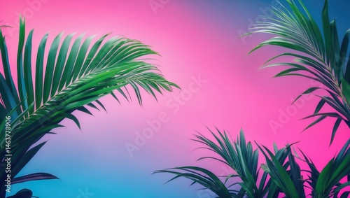 Bold, colorful tropical foliage featuring gradient hues in a minimal surreal art style