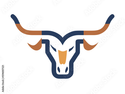 Bold longhorn cattle head logo design. A stylized, front-facing longhorn cattle head logo, perfect for branding or agricultural imagery.