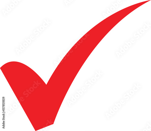 Bold red check mark symbol isolated on a clean white background for approval and success