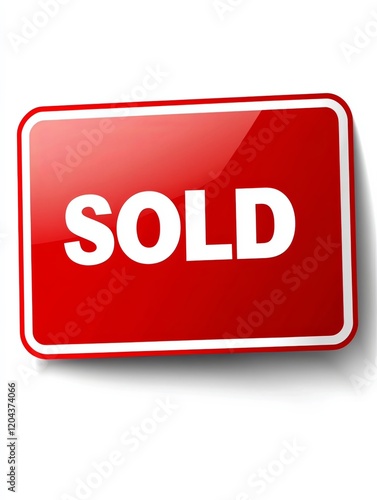 Bold white "SOLD" text on a red rectangular sticker, isolated on a pure white background