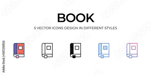Book Icon Design in Five style with Editable Stroke. Line, Solid, Flat Line, Duo Tone Color, and Color Gradient Line. Suitable for Web Page, Mobile App, UI, UX�and�GUI�design.