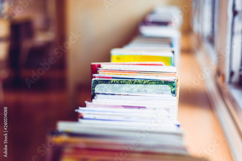 Book in the library room and blurred bookshelf. Back to school concept. library room. Vintage Style.