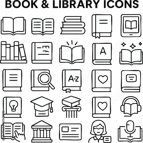 Book library icons set vector illustration outline design education learning study knowledge reading open closed