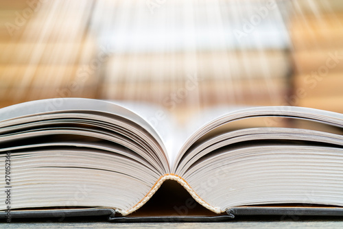 Book pages emit light. Symbol of wisdom, knowledge and learning.